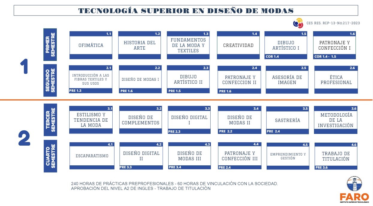 Bienvenidos a la carrera de Tecnología Superior en Diseño de Modas del Instituto FARO, donde la innovación, el arte y la técnica se fusionan para dar vida a las nuevas generaciones de creadores de estilo. Nuestro programa está diseñado para formar profesionales capaces de liderar en la industria de la moda, combinando conocimientos técnicos, visión estética y habilidades empresariales.