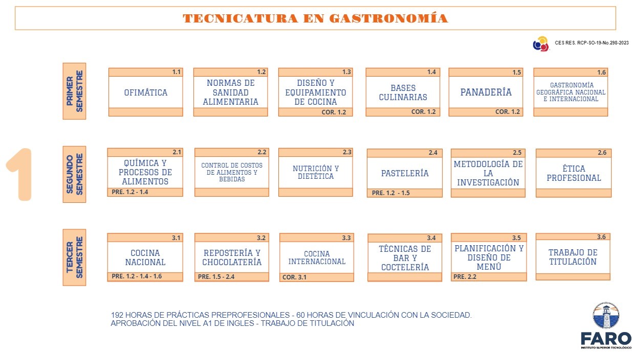 La Técnica en Gastronomía es una carrera que forma profesionales con habilidades culinarias y conocimientos en la preparación, presentación y gestión de alimentos y bebidas. Su enfoque combina la creatividad gastronómica con la aplicación de técnicas de cocina nacional e internacional, garantizando una formación integral en el arte culinario.