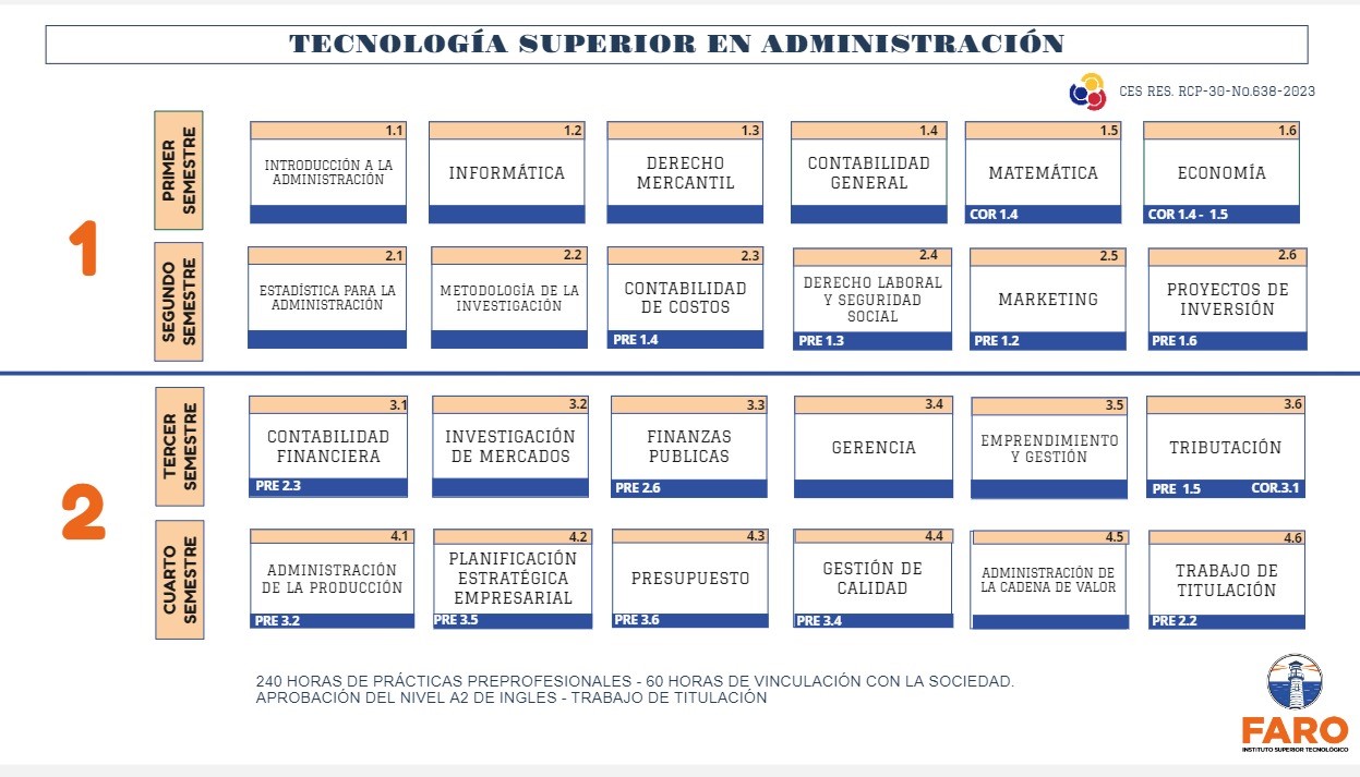 La Tecnología Superior en Administración es una carrera enfocada en la formación de profesionales con habilidades y conocimientos en gestión empresarial, toma de decisiones estratégicas y optimización de recursos organizacionales. Esta carrera prepara a los estudiantes para desempeñarse en diferentes áreas administrativas dentro de empresas privadas, instituciones públicas y emprendimientos propios aplicando principios administrativos, contables y estratégicos con una visión ética y sustentable.